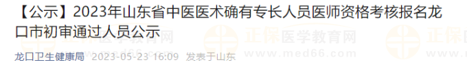 山東省龍口市2023年中醫(yī)醫(yī)術(shù)確有專長人員醫(yī)師資格考核審核最新動(dòng)態(tài)已發(fā)布,請(qǐng)山東龍口市報(bào)名中醫(yī)醫(yī)術(shù)確有專長的考生及時(shí)查看!