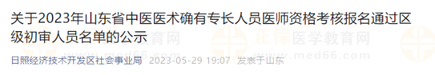 山東濱州市2023年中醫(yī)醫(yī)術(shù)確有專長(zhǎng)人員醫(yī)師資格考核審核最新動(dòng)態(tài)已發(fā)布,剛剛結(jié)束考核報(bào)名縣級(jí)初審,請(qǐng)山東濱州市報(bào)名中醫(yī)醫(yī)術(shù)確有專長(zhǎng)的考生及時(shí)查看!