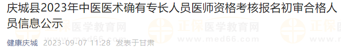 甘肅慶城縣2023年中醫(yī)醫(yī)術(shù)確有專(zhuān)長(zhǎng)人員醫(yī)師資格考核報(bào)名初審合格人員信息公示,初審已經(jīng)結(jié)束,請(qǐng)考生及時(shí)查看!