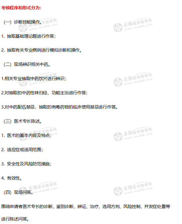 考核程序分為醫(yī)術(shù)專長陳述、現(xiàn)場問答、外治技術(shù)操作等。