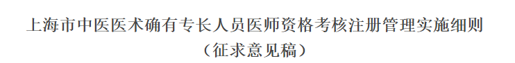 上海市中醫(yī)醫(yī)術(shù)確有專長(zhǎng)人員醫(yī)師資格考核注冊(cè)管理實(shí)施細(xì)則 (征求意見(jiàn)稿),具體通知內(nèi)容醫(yī)學(xué)教育網(wǎng)小編搜集整理如下: