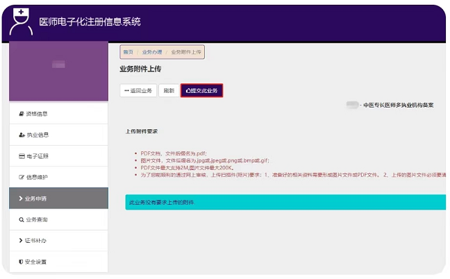1、登錄醫(yī)師電子化賬戶后,在【業(yè)務(wù)申請】中的【中醫(yī)(專長)醫(yī)師多執(zhí)業(yè)機構(gòu)備案】處點擊進入。