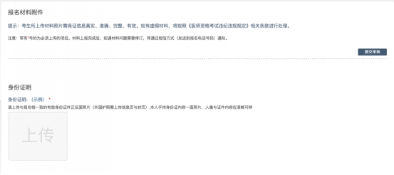 注意:這里顯示的內(nèi)容,是醫(yī)師資格考試所有可能需要的材料列表,考生根據(jù)自己的個人情況和報名要求,上傳所需的考試材料圖片。