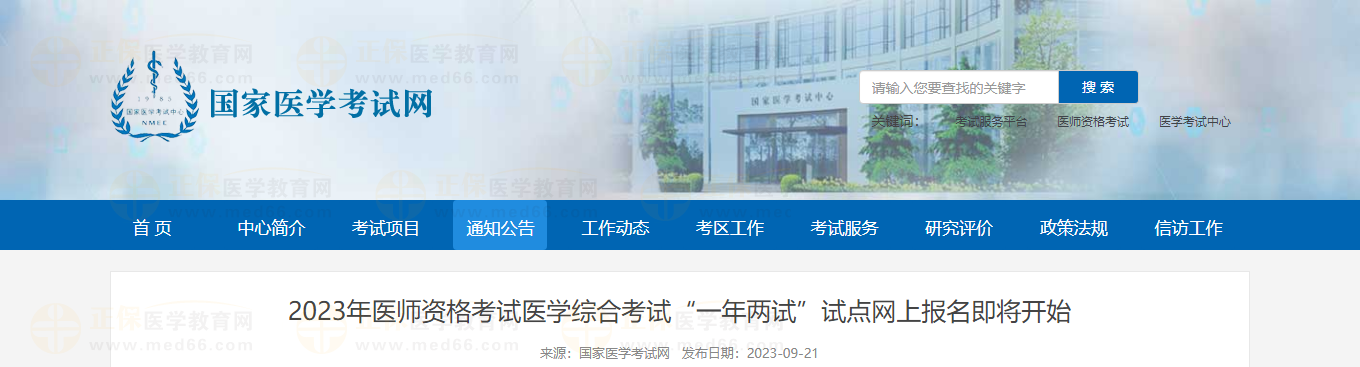 2023年醫(yī)師資格考試醫(yī)學(xué)綜合考試“一年兩試”試點(diǎn)網(wǎng)上報(bào)名通知