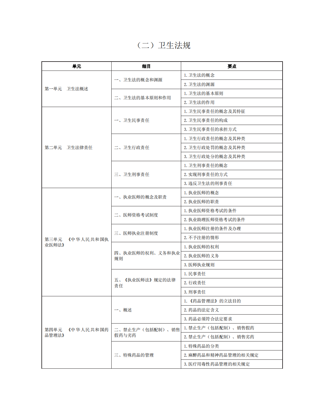 全國2022中醫(yī)執(zhí)業(yè)助理醫(yī)師資格考試大綱《衛(wèi)生法規(guī)》完整版