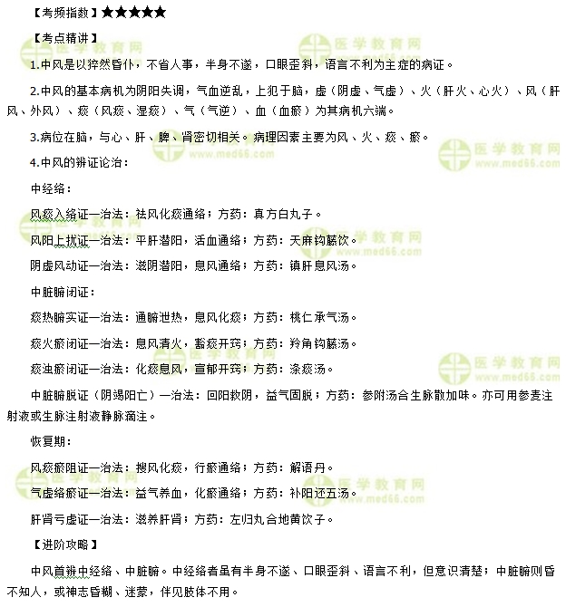牢記考點、吃透考點需要有計劃地復習鞏固,為幫助大家更好地復習本部分內(nèi)容,醫(yī)學教育網(wǎng)編輯將“中醫(yī)執(zhí)業(yè)助理醫(yī)師考試“腦系病癥”考點習題詳解——中風”具體資料為大家整理如下:
