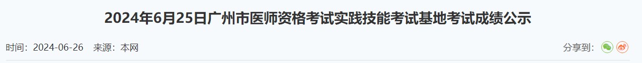6月25日廣東廣州2024醫(yī)師資格實(shí)踐技能考試成績結(jié)果公示