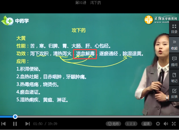 3、具有涼血解毒功效的藥物---大黃