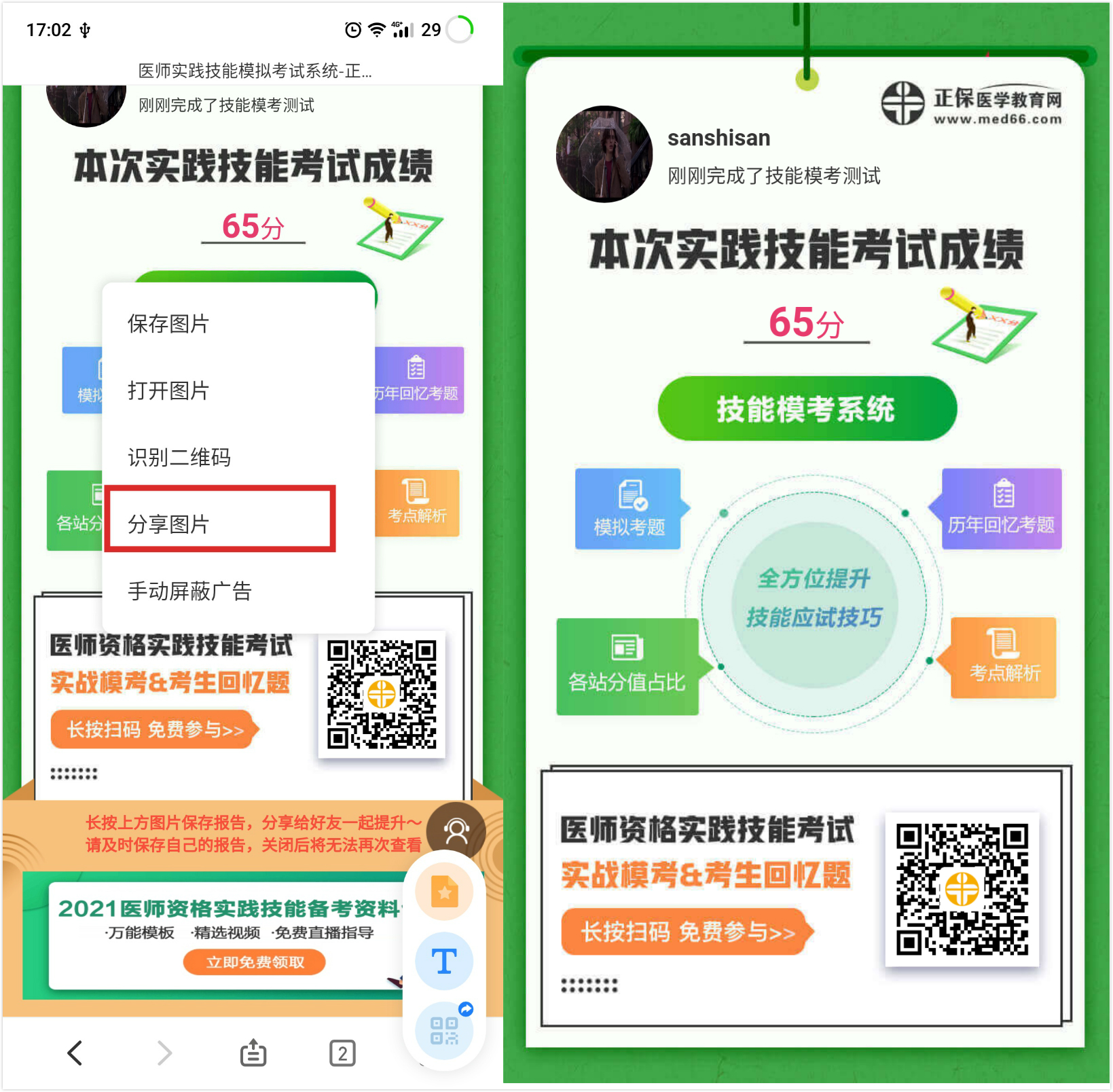 第三:可以長按圖片保存,發(fā)給朋友讓朋友也做一下吧。