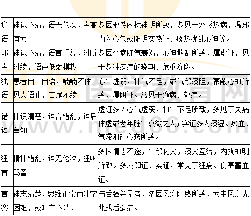 2.譫語、鄭聲、獨(dú)語、錯(cuò)語、狂言、言謇的概念及臨床意義