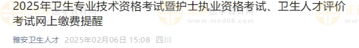 雅安2025年主管護師考試網(wǎng)上繳費提醒