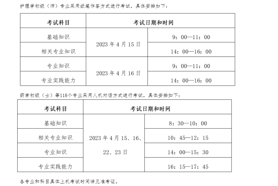 護(hù)理學(xué)初級(師)專業(yè)采用紙筆作答方式進(jìn)行考試,具體安排如下: