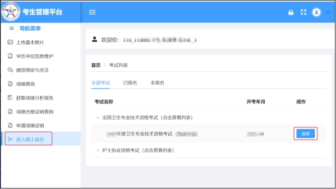 1.點(diǎn)擊【進(jìn)入網(wǎng)上報(bào)名】,選擇“xxxx年度衛(wèi)生專業(yè)技術(shù)資格考試”。