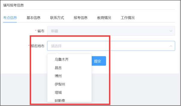 (1)下拉選擇“報(bào)名地市”。