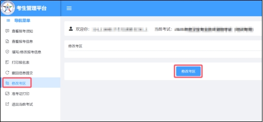 如信息填寫后發(fā)現(xiàn)省份選擇有誤,請(qǐng)?jiān)凇拔刺峤粓?bào)名信息”狀態(tài)下,使用【修改考區(qū)】功能進(jìn)行修改。
