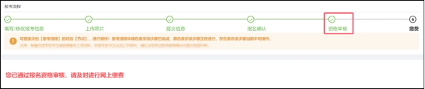 未開通網(wǎng)上繳費(fèi)的考區(qū),【資格審核】節(jié)點(diǎn)變?yōu)榫G色即表示報(bào)名成功。