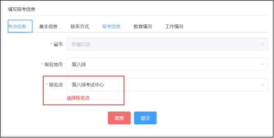天津、上海、新疆兵團(tuán)考區(qū)采用線上確認(rèn)方式,考生在填寫考點(diǎn)信息時(shí)須選擇報(bào)名點(diǎn)。