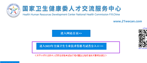 成績查詢?nèi)肟谝唬?/strong>“國家衛(wèi)生健康委人才交流服務(wù)中心(原中國衛(wèi)生人才網(wǎng))”網(wǎng)站
