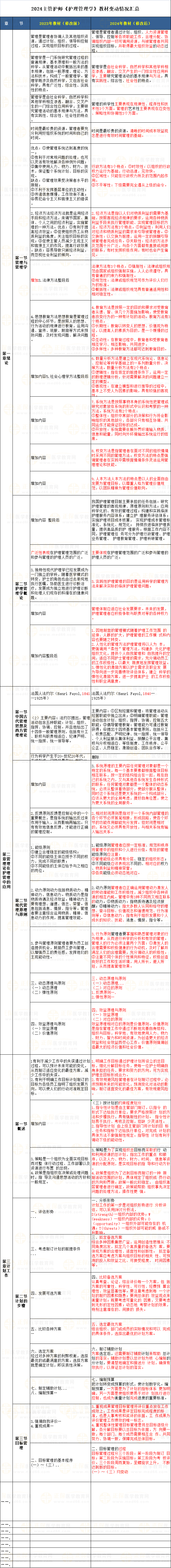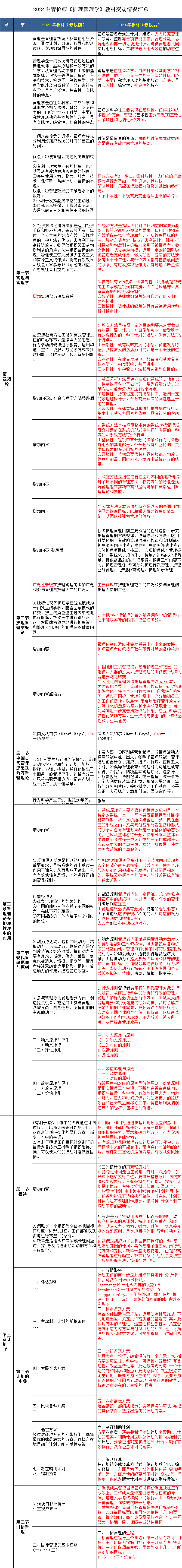 2024年主管護(hù)師《護(hù)理管理學(xué)》教材變動情況匯總