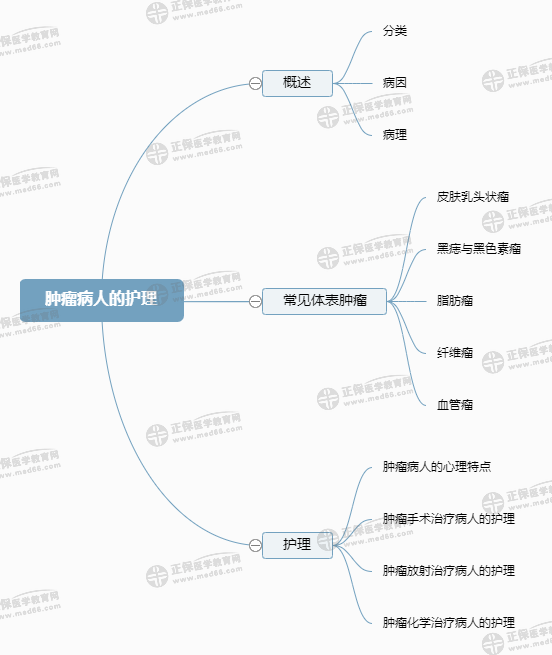 腫瘤病人的護(hù)理是2022主管護(hù)師考試十分重要的一部分,醫(yī)學(xué)教育網(wǎng)小編將腫瘤病人的護(hù)理的知識(shí)內(nèi)容進(jìn)行歸納整理,并制作成了思維導(dǎo)圖,希望能夠幫助各位考生更好的記憶學(xué)習(xí),具體內(nèi)容如下: