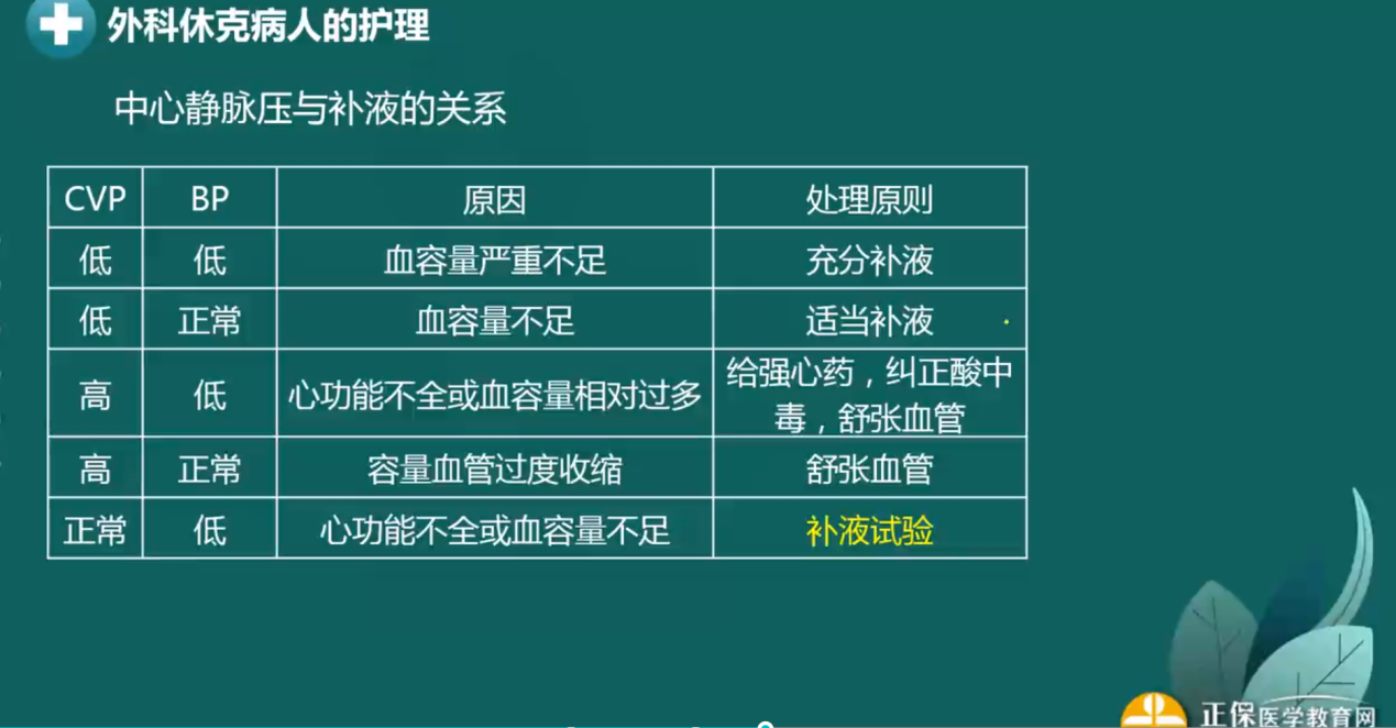 【主管護(hù)師】外科休克病人的護(hù)理-中心靜脈壓與補(bǔ)液的關(guān)系
