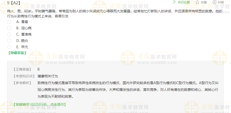 2023主管護師考試考點回顧:致病性行為模式