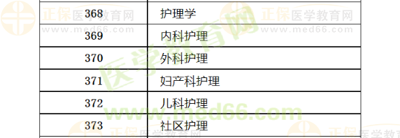 由上圖即可看出代碼368代表的是護理學專業(yè),369代表的是內科護理專業(yè),依此類推。