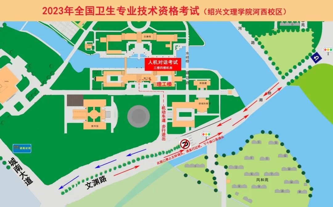 考生從紹興文理學(xué)院河西校區(qū)的南大門機(jī)動(dòng)車道進(jìn)出,導(dǎo)航名稱:紹興文理學(xué)院河西校區(qū)理工樓(即:文淵路風(fēng)則江廊橋西側(cè))。建議送考車輛從環(huán)城西路進(jìn)入廊橋。如果從城南大道進(jìn)入學(xué)校,路口禁止左轉(zhuǎn)。