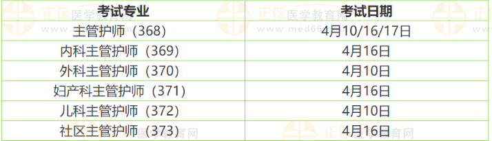 備注:護(hù)理學(xué)(中級,專業(yè)代碼368)專業(yè)考試時(shí)間為4月10、16、17日,考生參加其中一天的考試,具體時(shí)間以準(zhǔn)考證為準(zhǔn)。