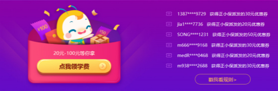 只要登錄就能領取20元~100元面額不等的學費,可與滿減活動疊加使用,優(yōu)惠享不停!