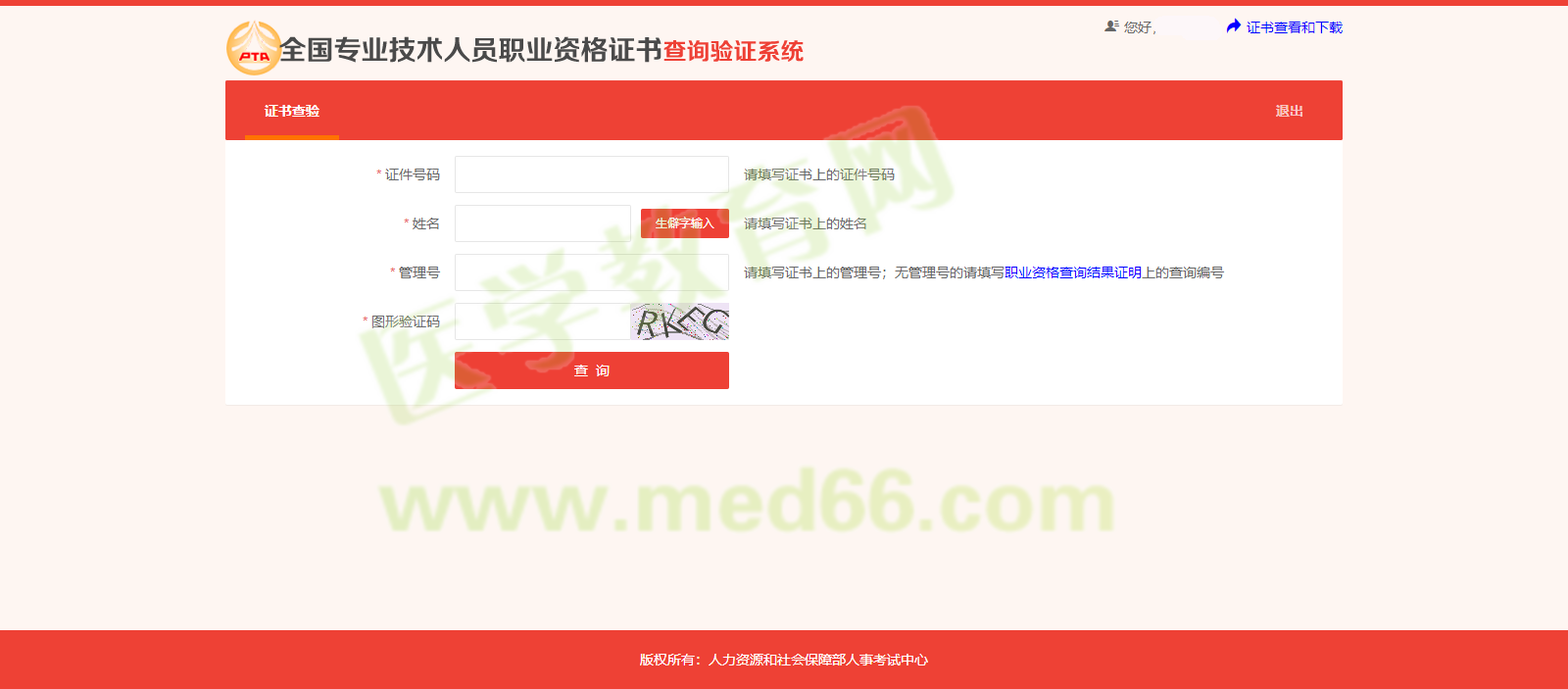 輸入證件號碼、姓名、管理號及圖形驗(yàn)證碼。