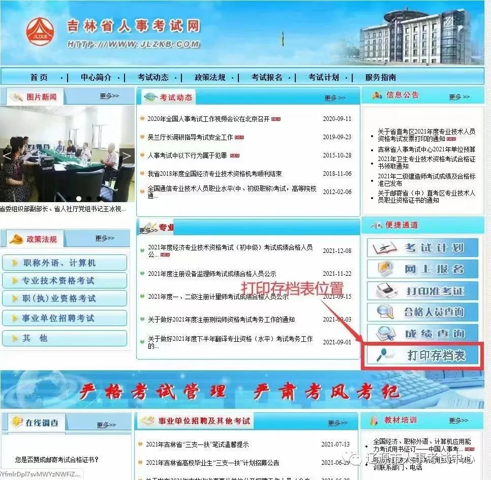 吉林省人事考試網(wǎng)“打印存檔表”位置