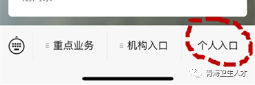 (1)尚未在“青海衛(wèi)生人才”微信公眾號(hào)實(shí)名注冊(cè)的考生,點(diǎn)擊右下角“個(gè)人入口”填寫(xiě)相關(guān)信息