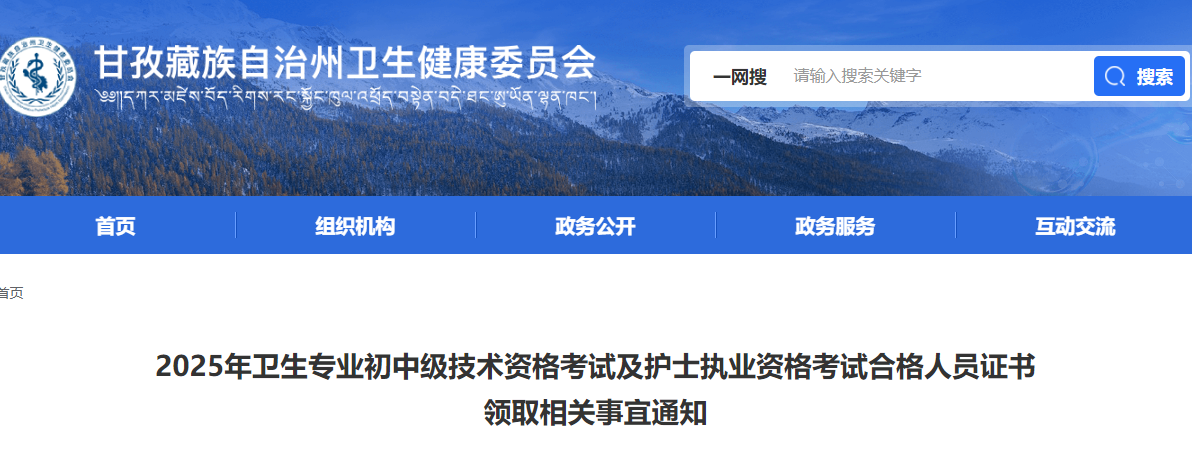甘孜2025年主管護師考試合格人員證書領取相關事宜通知