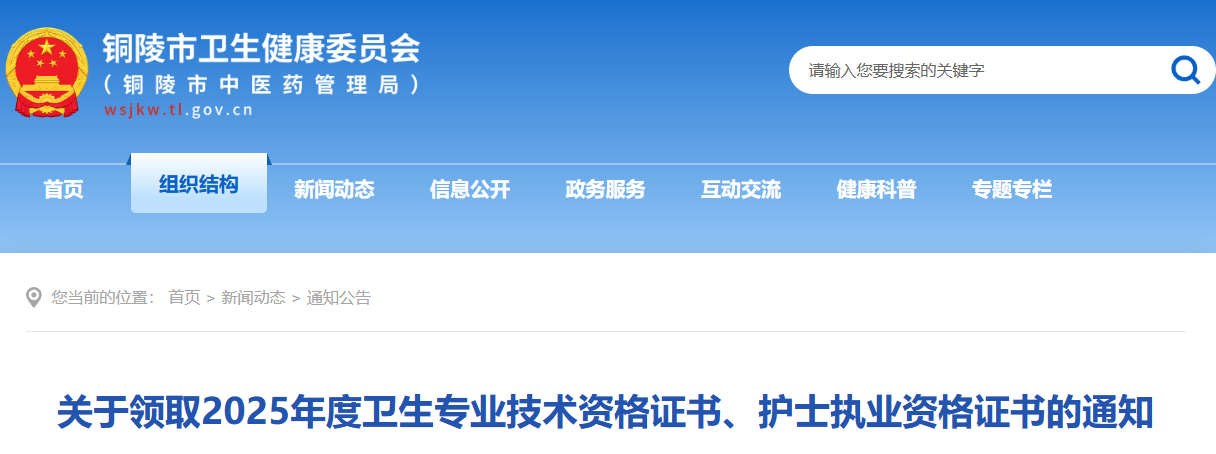 參加2025年衛(wèi)生專業(yè)技術資格考試和護士執(zhí)業(yè)資格考試且成績合格的銅陵市考點考生,即日起可領取資格證書,現(xiàn)就領取證書的具體事宜通知如下: