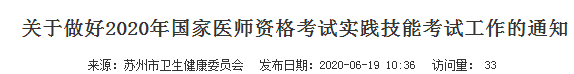 蘇州市關(guān)于做好2020年國家醫(yī)師資格考試實(shí)踐技能考試工作的通知