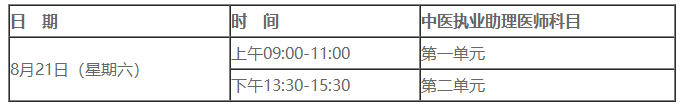 2021年中醫(yī)執(zhí)業(yè)助理醫(yī)師醫(yī)學綜合筆試一試全國統(tǒng)一考試時間為8月21日: