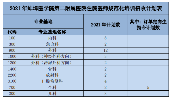 2021年蚌埠醫(yī)學(xué)院第二附屬醫(yī)院住院醫(yī)師規(guī)范化培訓(xùn)招收計(jì)劃表