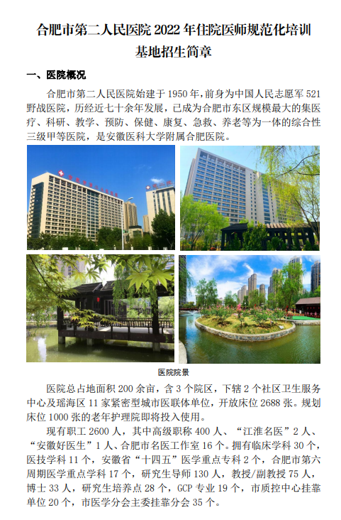 相關附件:合肥市第二人民醫(yī)院2022年住院醫(yī)師規(guī)范化培訓招生簡章
