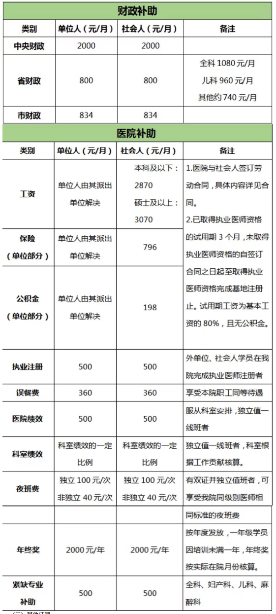 在我院住培學(xué)員享受中央、省、市各級(jí)財(cái)政的生活補(bǔ)貼,以及醫(yī)院給予的各類補(bǔ)貼,收入總計(jì)約9000-11000元/月,年收入10余萬(wàn)元。詳見下表: