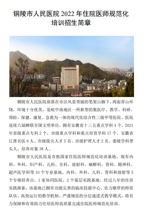相關(guān)附件:銅陵市人民醫(yī)院2022年住院醫(yī)師規(guī)范化培訓(xùn)招生簡(jiǎn)章