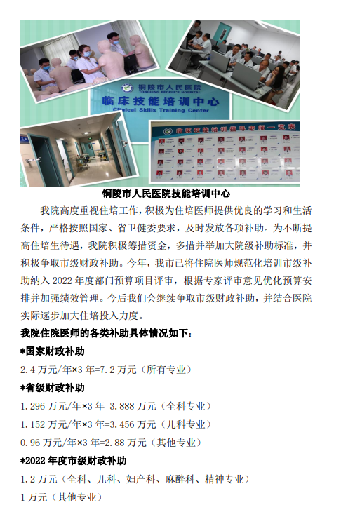 以上就是“銅陵市人民醫(yī)院2022年住院醫(yī)師規(guī)范化培訓(xùn)招生簡(jiǎn)章”的全部?jī)?nèi)容,由醫(yī)學(xué)教育網(wǎng)小編整理,希望對(duì)您有所幫助!想要了解更多關(guān)于住院醫(yī)師規(guī)范化培訓(xùn)考試相關(guān)政策,請(qǐng)繼續(xù)關(guān)注此欄目!