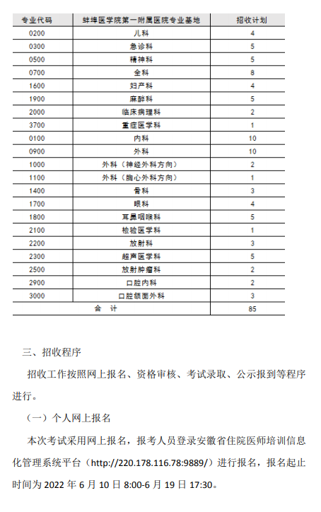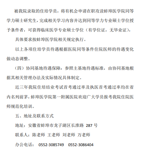 以上就是“蚌埠醫(yī)學(xué)院第一附屬醫(yī)院2022年住院醫(yī)師規(guī)范化培訓(xùn)招收通知”的全部內(nèi)容,由醫(yī)學(xué)教育網(wǎng)小編整理,希望對(duì)您有所幫助!想要了解更多關(guān)于住院醫(yī)師規(guī)范化培訓(xùn)考試相關(guān)政策,請(qǐng)繼續(xù)關(guān)注此欄目!