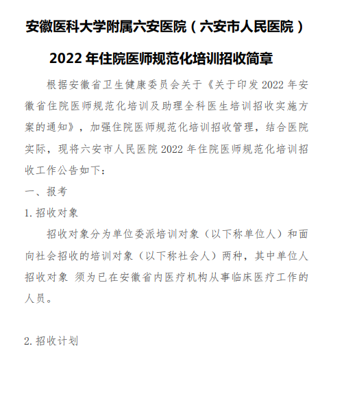 推薦閱讀:安徽省2022年住院醫(yī)師規(guī)范化培訓(xùn)招生人數(shù)及招生簡章匯總