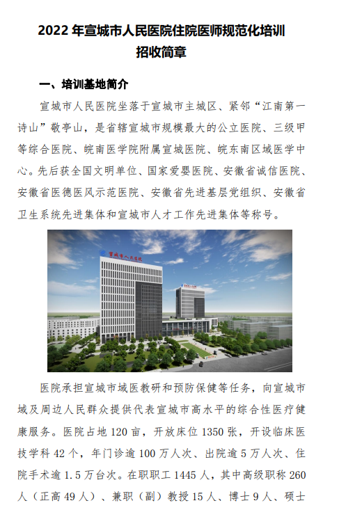 相關(guān)附件:宣城市人民醫(yī)院2022年住院醫(yī)師規(guī)范化培訓(xùn)招生簡章