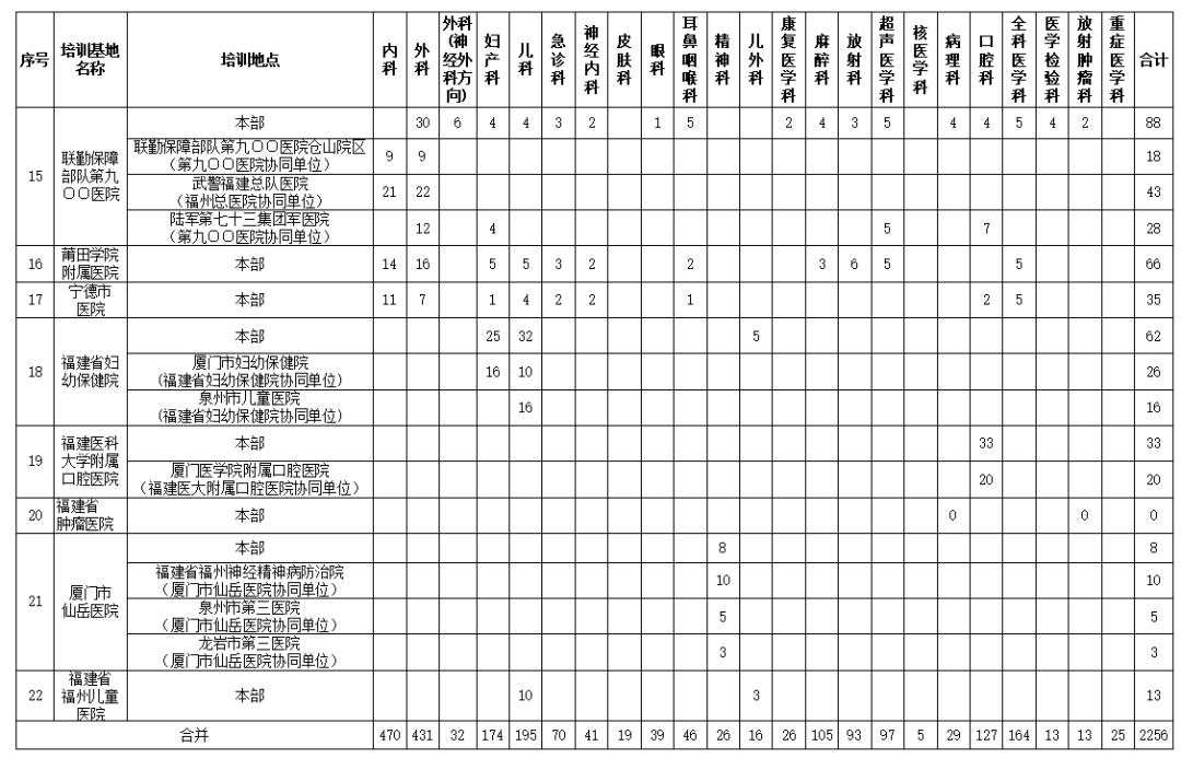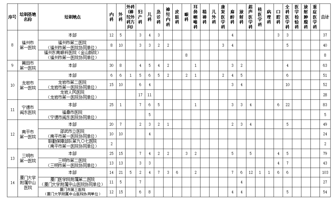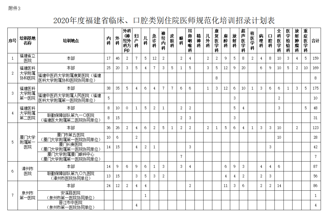 2020年度福建省臨床、口腔類別住院醫(yī)師規(guī)范化培訓招錄計劃表