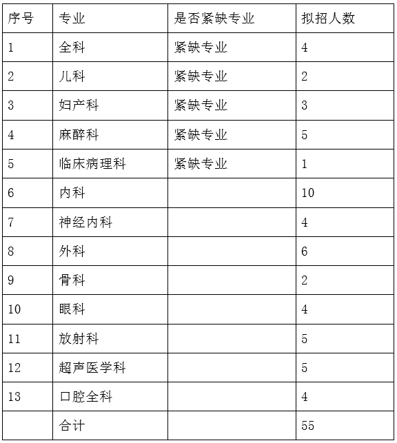 四、招生專(zhuān)業(yè)及名額(共55名)