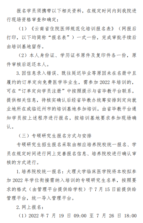 以上就是“大理大學(xué)第一附屬醫(yī)院2022年住院醫(yī)師規(guī)范化培訓(xùn)基地招生簡章”的全部內(nèi)容,由醫(yī)學(xué)教育網(wǎng)小編整理,希望對您有所幫助!想要了解更多關(guān)于住院醫(yī)師規(guī)范化培訓(xùn)考試相關(guān)政策,請繼續(xù)關(guān)注此欄目!