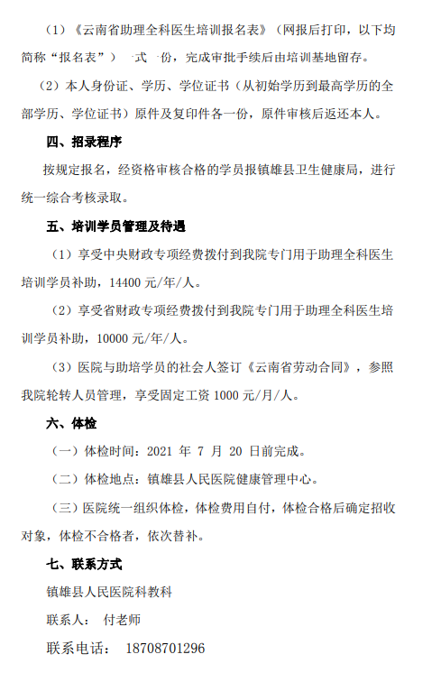 相關(guān)附件: 2022年鎮(zhèn)雄縣人民醫(yī)院助理全科醫(yī)生培訓(xùn)基地招收簡(jiǎn)章