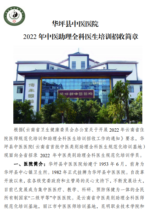 相關(guān)附件:華坪縣中醫(yī)醫(yī)院2022年中醫(yī)助理全科醫(yī)生培訓(xùn)招收簡章
